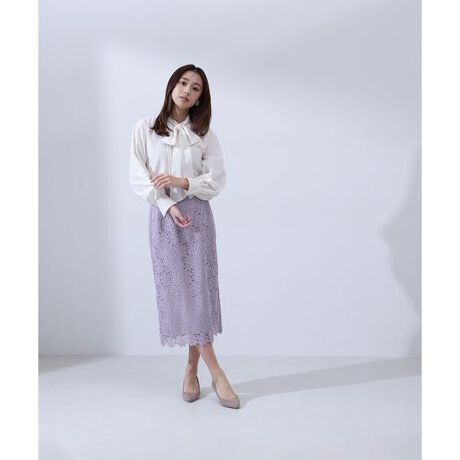 お仕事シーンにもぴったりな品の良いレースタイトスカート。すっきりとしたIライン&ハイウエストで腰まわりをカバーしながら、キレイなレッグラインも叶えてくれます。裾はレースの雰囲気を活かした、透け感のあるスカラップディテールで、軽やかな足元を演出。キレイ目なブラウスを合わせたスタイリングがおすすめです。<素材>程よい厚みの上品な印象のレース素材を使用しています。<詳細>仕様・後ろファスナー裏地・あり透け感・なし / 光沢・なし / 伸縮性・なし 生地の厚さ・普通※モデルの着用画像の場合、光の当たり具合により、実際の色味と異なって見えることがございます。色味は、商品単体の画像をご参照ください。