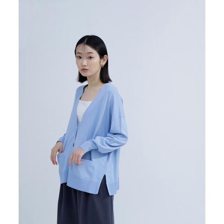 腰丈のボクシーシルエットのベーシックなカーディガン。長めの着丈でも、サイドスリットが入っているのでボトムのポケットに手を入れやすく、腰で引っかからずにストンと着られるデザインです。フロントポケット付き。シンプルなインナー合わせは勿論、Vネックトップスとして、襟にデザインが入っているシャツやブラウスとのレイヤードも楽しめます。<素材>ストレッチの効いたハイゲージで編んだ天竺編み。柔らかなタッチで着心地も良いです。<詳細>仕様・前ボタン裏地・なし透け感・なし / 光沢・なし / 伸縮性・あり 生地の厚さ・普通※モデルの着用画像の場合、光の当たり具合により、実際の色味と異なって見えることがございます。色味は、商品単体の画像をご参照ください。