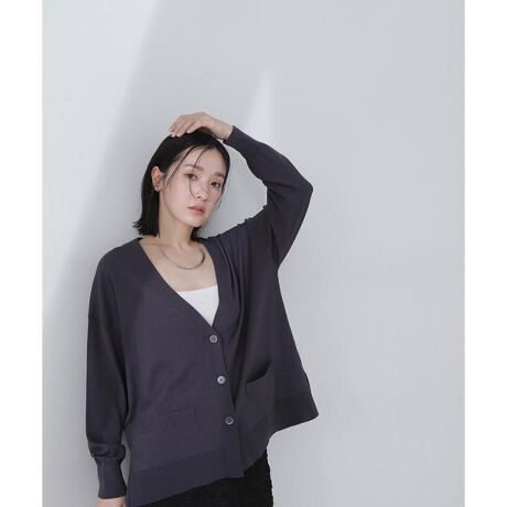 腰丈のボクシーシルエットのベーシックなカーディガン。長めの着丈でも、サイドスリットが入っているのでボトムのポケットに手を入れやすく、腰で引っかからずにストンと着られるデザインです。フロントポケット付き。シンプルなインナー合わせは勿論、Vネックトップスとして、襟にデザインが入っているシャツやブラウスとのレイヤードも楽しめます。<素材>ストレッチの効いたハイゲージで編んだ天竺編み。柔らかなタッチで着心地も良いです。<詳細>仕様・前ボタン裏地・なし透け感・なし / 光沢・なし / 伸縮性・あり 生地の厚さ・普通※モデルの着用画像の場合、光の当たり具合により、実際の色味と異なって見えることがございます。色味は、商品単体の画像をご参照ください。