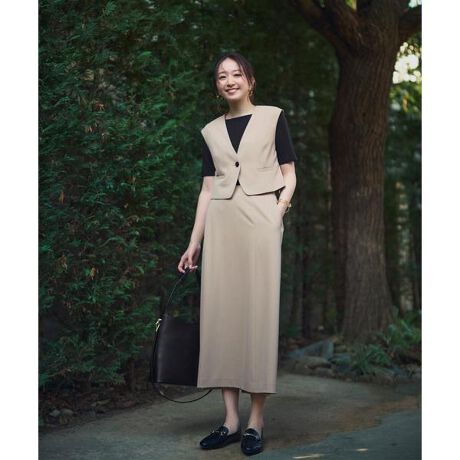 コンパクトなクロップドベストとAラインスカートのハンサムなセットアイテム。ベストはノーカラーでミニマルな印象ながら、パネル切り替えでキレイなシルエットに拘ったデザインです。中はキャミソールやシアーインナーと合わせた、ミニマルな着こなしがオススメ。スカートはウエスト裏に平ゴムをたたき、ナチュラルストレッチではき心地がよいです。腰まわりをスッキリさせたAラインで、甘すぎずハンサムすぎない絶妙なバランスを叶えてくれます。<素材>メランジ感のある表面感でさらっとした手触りの素材を使用。落ち感があるのでハンサムになりすぎず、女性らしい動きが出る素材です。<詳細>仕様・ベストは前ボタン、スカートは左ファスナー裏地・ベストはなし、スカートはあり透け感・なし / 光沢・なし / 伸縮性・ややあり 生地の厚さ・普通※モデルの着用画像の場合、光の当たり具合により、実際の色味と異なって見えることがございます。色味は、商品単体の画像をご参照ください。