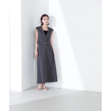 コンパクトなクロップドベストとAラインスカートのハンサムなセットアイテム。ベストはノーカラーでミニマルな印象ながら、パネル切り替えでキレイなシルエットに拘ったデザインです。中はキャミソールやシアーインナーと合わせた、ミニマルな着こなしがオススメ。スカートはウエスト裏に平ゴムをたたき、ナチュラルストレッチではき心地がよいです。腰まわりをスッキリさせたAラインで、甘すぎずハンサムすぎない絶妙なバランスを叶えてくれます。<素材>メランジ感のある表面感でさらっとした手触りの素材を使用。落ち感があるのでハンサムになりすぎず、女性らしい動きが出る素材です。<詳細>仕様・ベストは前ボタン、スカートは左ファスナー裏地・ベストはなし、スカートはあり透け感・なし / 光沢・なし / 伸縮性・ややあり 生地の厚さ・普通※モデルの着用画像の場合、光の当たり具合により、実際の色味と異なって見えることがございます。色味は、商品単体の画像をご参照ください。