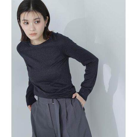 インナーとしてもトップス単品としても使いやすいシンプルなラメニット。ミニマルなサイズ感でキャミワンピースやジャンスカのインにも着やすく汎用性抜群です。ラメ糸が入っているのでシンプルになり過ぎず、単品使いもしやすいデザイン。レイヤードは勿論、コンパクトなサイズ感でウエストインもアウトもしやすく、ボトムを選ばずに着ていただけます。<素材>リサイクルポリエステルのサスティナブルな糸にラメ糸を引き揃えています。<詳細>仕様・開閉なし裏地・なし透け感・あり / 光沢・あり / 伸縮性・あり 生地の厚さ・普通※モデルの着用画像の場合、光の当たり具合により、実際の色味と異なって見えることがございます。色味は、商品単体の画像をご参照ください。