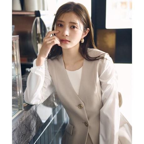 バックスタイルのフレア感が上品なムードを高めるノーカラージレです。ウエストをシェイプしたペプラムシルエットで、エレガントな大人の女性らしさを演出。同素材のパンツ(店舗商品番号121-5130204)を合わせてSETUPコーデはもちろん、デニムを穿いてカジュアルにも着回せます。1枚で着るのが一番大人可愛いおすすめスタイリング、寒い時は中にカットソーとレイヤードしても着こなせます。<素材>キレイめなツイル素材を使用しています。<詳細>仕様・前ボタン裏地・あり透け感・なし / 光沢・なし / 伸縮性・なし 生地の厚さ・普通※モデルの着用画像の場合、光の当たり具合により、実際の色味と異なって見えることがございます。色味は、商品単体の画像をご参照ください。