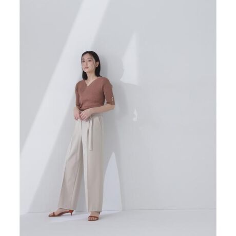 スクエア型バックルが効いたベーシックで使いやすいストレートパンツ。センタープレス入りでキレイ見えし、オフィスからカジュアルMIXまで幅広く使えます。程よく肌離れするシルエットは、通年着ていただける万能デザイン。ハイウエストデザインでスタイルアップ効果を期待できます。<素材>ドライタッチでナチュラルなストレッチ感のある素材を使用。<詳細>仕様・前ファスナー裏地・なし透け感・なし / 光沢・なし / 伸縮性・ややあり 生地の厚さ・普通※モデルの着用画像の場合、光の当たり具合により、実際の色味と異なって見えることがございます。色味は、商品単体の画像をご参照ください。