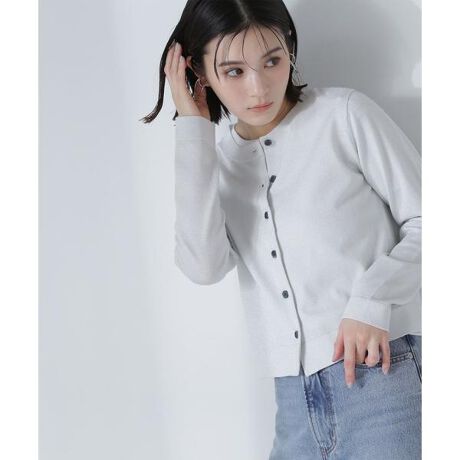 カーディガンとして羽織るのはもちろん、セットインで首にそったクルーネックなので、前を留めて1枚着としてもおすすめです。裾リブを縮めず、まっすぐな脇ラインなので、どんなアイテムの羽織にも使いやすいデザイン。春夏シーズンを感じさせる、貝調の小さめな配色釦を多連使いしたフロントデザインも可愛いポイント。<素材>ストレッチの効いたハイゲージで編んだ天竺編み。柔らかなタッチで着心地も良いです。チャコール、オフ白にはシルバーラメ糸を引き揃えています。<詳細>仕様・前ボタン裏地・なし透け感・なし / 光沢・なし / 伸縮性・あり 生地の厚さ・普通※モデルの着用画像の場合、光の当たり具合により、実際の色味と異なって見えることがございます。色味は、商品単体の画像をご参照ください。
