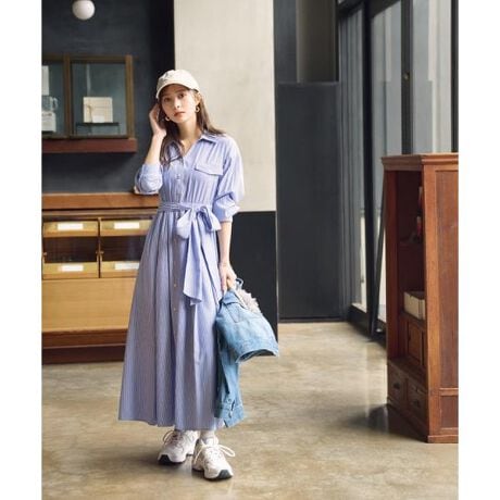 ドロップショルダーシャツワンピース