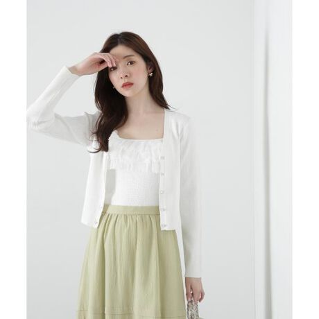 インナーキャミソールのドット柄チュールが愛らしいポイントのニットアンサンブル。SET使いはもちろん、別々でも着回せるデザインです。インナーキャミソールのチュールを活かすよう、ニットカーディガンは全てボタンを開けて着こなすのがお勧めです。<素材>さらっとした糸とチュール素材を使用しています。<詳細>仕様・前ボタン裏地・なし透け感・なし / 光沢・なし / 伸縮性・あり 生地の厚さ・普通※モデルの着用画像の場合、光の当たり具合により、実際の色味と異なって見えることがございます。色味は、商品単体の画像をご参照ください。