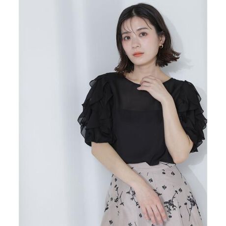 ふんだんに入れたボリュームフリルが一枚で着映えるブラウス。程よい透け感のある素材なので夏本番もお使いいただけます。袖のボリュームフリル部分のみ、落ち感のあるシアー素材で引き算したデザイン。襟はすっきりとしたボートネックなので華奢なネックレスをつけると、華やかにも着こなせます。パンツやスカートなど、どんなボトムとも相性良く着ていただけます。<素材>程よい落ち感のあるシアーな綾素材を使用しています。<詳細>仕様・後ろボタン裏地・なし透け感・あり / 光沢・なし / 伸縮性・なし 生地の厚さ・薄手※モデルの着用画像の場合、光の当たり具合により、実際の色味と異なって見えることがございます。色味は、商品単体の画像をご参照ください。