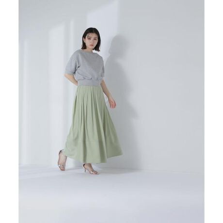 後ろウエストはゴム仕様でイージーにはけるフレアスカート。前ウエストはギャザーを無くし、トップスインしたコーディネートもキレイに決まります。タックプリーツでふんわりと作ったシルエットが、フェミニンなデザイン。太めの切り替えやヘムがシンプルすぎないポイントになる一枚です。<素材>表面に細やかなシボ感を感じる素材を使用。やや微光沢な素材と凹凸の表面感が退屈しない表情の素材です。<詳細>仕様・開閉なし裏地・あり透け感・ややあり / 光沢・ややあり / 伸縮性・なし 生地の厚さ・普通※モデルの着用画像の場合、光の当たり具合により、実際の色味と異なって見えることがございます。色味は、商品単体の画像をご参照ください。