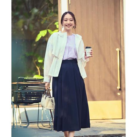 フロントはウエストから裾まで繋がるタックを施した、シンプルながらもこだわりのあるタックスカート。サイドはバックルデザインが付いているのでウエストインも決まります。後ろウエストはゴム仕様で、ストレスフリーなはき心地。程よいハリと柔らかな風合いで、カジュアルダウンにも通勤オフィスシーンにも着ていただけます。<素材>品の良いツヤ感のツイル素材を使用しています。<詳細>仕様・後ろファスナー裏地・あり透け感・なし / 光沢・なし / 伸縮性・なし 生地の厚さ・普通※モデルの着用画像の場合、光の当たり具合により、実際の色味と異なって見えることがございます。色味は、商品単体の画像をご参照ください。