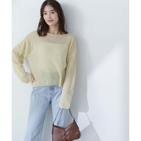 サスティナブルなプレーンな糸にラメ糸を引き揃えた軽くてリラクシーな着心地のニット。程よいシアー感があり、こなれ感のあるミニマルなデザインです。ラメ糸が入っているのでカジュアルな着こなしもキレイ目に決まり、短丈なのでボクシーシルエットでも軽めの印象で着ていただけます。<素材>リサイクルポリエステルのサスティナブルな糸にラメ糸を引き揃えています。<詳細>仕様・開閉なし裏地・なし透け感・あり / 光沢・あり / 伸縮性・あり 生地の厚さ・薄手※モデルの着用画像の場合、光の当たり具合により、実際の色味と異なって見えることがございます。色味は、商品単体の画像をご参照ください。