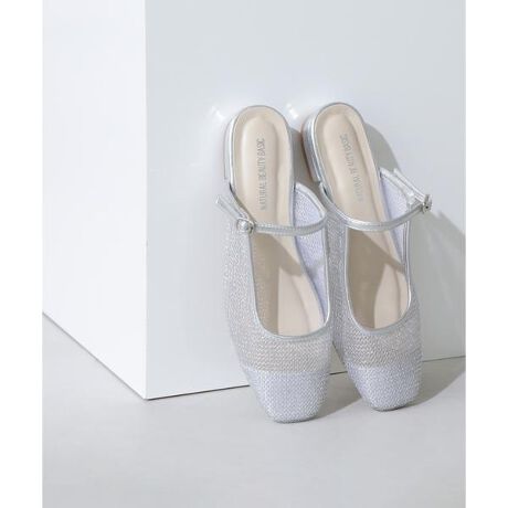 透け感が涼しげなチュールに、メタリックヤーンでエンブロイダリーした素材を使用しているスリップオンタイプ(靴紐なし)のフラットミュールです。バレエシューズのようなフォルムに、メリージェーン風のストラップを付けており、リラックス感とホールド感が両立したデザイン。ボリュームのあるボトムスとのコーディネートにおすすめです♪【センチ】S:約22.5cm、M:約23.5cm、L:約24.5cm※モデルの着用画像の場合、光の当たり具合により、実際の色味と異なって見えることがございます。色味は、商品単体の画像をご参照ください。※N.Natural Beauty Basic の一部店舗においても取り扱いがございます。