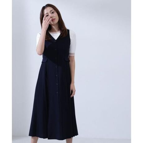 サイドプリーツを切り替えたデザインが印象的なジャンスカ。プリーツ切り替え部分には、斜めに飾りフラップポケットをアクセントに効かせたデザイン。ふわっと揺れるシルエットに、フロントの小さめスコッチ釦がポイントです。すっきりとしたVネックなのでコンパクトなインナーを合わせてレイヤードしたり、一枚着としてもコーディネートを楽しめます。<素材>さらっとドライタッチな合繊リネンライク素材を使用。<詳細>仕様・前ボタン裏地・あり透け感・なし / 光沢・なし / 伸縮性・ややあり 生地の厚さ・普通※モデルの着用画像の場合、光の当たり具合により、実際の色味と異なって見えることがございます。色味は、商品単体の画像をご参照ください。
