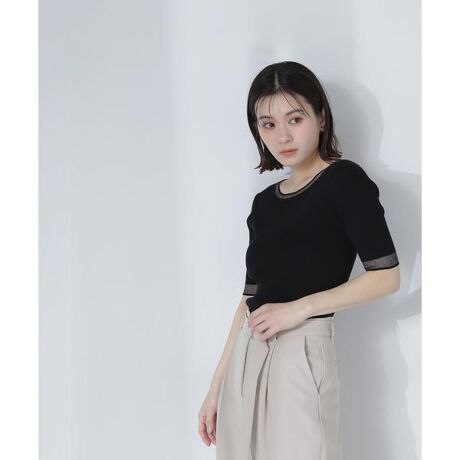 ONにもOFFシーンにも使いやすいコンパクトなシルエットのリブニット。ベージュとブルーのみ、ボディには白のシアー配色でラインを効かせています。袖口と首元に施した同系色のシアーラインが軽さを出すポイント。後ろは肩減らしでショルダーラインもキレイに見せてくれるデザインです。<素材>身頃はストレッチの効いた糸で細いリブ編み、袖口と首元はキラっとした光沢のあるシアー編地を使用しています。<詳細>仕様・開閉なし裏地・なし透け感・なし / 光沢・なし / 伸縮性・あり 生地の厚さ・普通※モデルの着用画像の場合、光の当たり具合により、実際の色味と異なって見えることがございます。色味は、商品単体の画像をご参照ください。