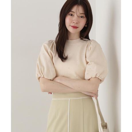 ボリューミーなバルーン袖がポイントのニット。肩幅は狭めにしているため、ボリューム袖でも着ぶくれしにくいデザインです。小さいパール調がコーディネートを華やかに見せてくれます。<素材>さらっとした糸を使用しています。<詳細>仕様・開閉なし裏地・なし透け感・なし / 光沢・なし / 伸縮性・あり 生地の厚さ・普通※モデルの着用画像の場合、光の当たり具合により、実際の色味と異なって見えることがございます。色味は、商品単体の画像をご参照ください。