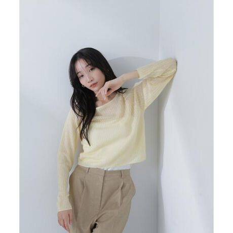 今季トレンドのシアーニット。インナー見せで透け感を活かしたレイヤードを楽しめるデザインです。ゆるっと着られる袖口やシルエットが今っぽく、太めのリブ編みが退屈しないデザイン。クロップド丈なので、ハイウエストのボトムと合わせたコーディネートがおすすめです。<素材>今季トレンドのシアー感とラメ感のある糸を使用。全体に優しいきらめきがあり、度甘で透け感のある編地で編んだワイドリブニットです。<詳細>仕様・開閉なし裏地・なし透け感・あり / 光沢・あり / 伸縮性・あり 生地の厚さ・薄手※モデルの着用画像の場合、光の当たり具合により、実際の色味と異なって見えることがございます。色味は、商品単体の画像をご参照ください。