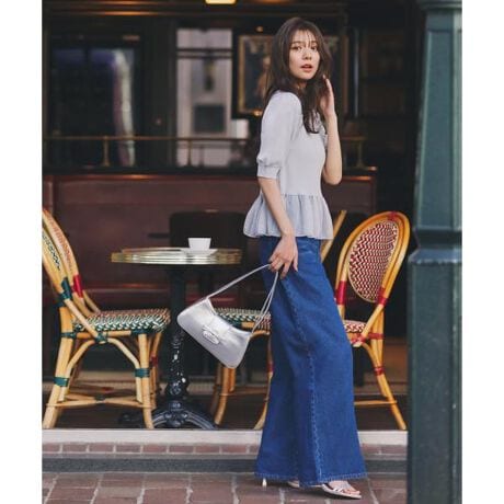 ストレッチデニム生地を使用したフレアデニムパンツ。ウエストから膝まですっきりとフィットするスリムデザインです。ハイウエストデザインと、裾はフレアシルエットで脚長効果を期待できます。<素材>ストレッチが効いているデニム生地を使用しています。※こちらの商品は水や雨に濡れたり、汗による湿気、乾燥状態での摩擦により、薄い色の衣服などに色移りする可能性があります。予めご了承いただき、ご使用の際にはご注意くださいますようお願い致します。<詳細>仕様・前ファスナー裏地・なし透け感・なし / 光沢・なし / 伸縮性・ややあり 生地の厚さ・普通※モデルの着用画像の場合、光の当たり具合により、実際の色味と異なって見えることがございます。色味は、商品単体の画像をご参照ください。