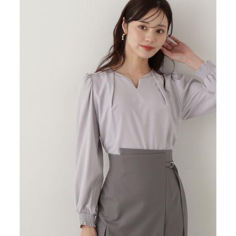襟にチェーンを付けたキレイめブラウス。チェーンは取り外しができます。襟から広めのタックを入れており、胸元がすっきり見えるデザイン。袖口の内側がシャーリングゴムなので動きやすく、デザインポイントにもなりつつ、手首をきゅっと引き締めながら着用いただけます。<素材>さらっとしたポリエステル素材を使用。シワになりにくい素材です。<詳細>仕様・後ろボタン裏地・あり透け感・なし / 光沢・なし / 伸縮性・なし 生地の厚さ・普通※モデルの着用画像の場合、光の当たり具合により、実際の色味と異なって見えることがございます。色味は、商品単体の画像をご参照ください。