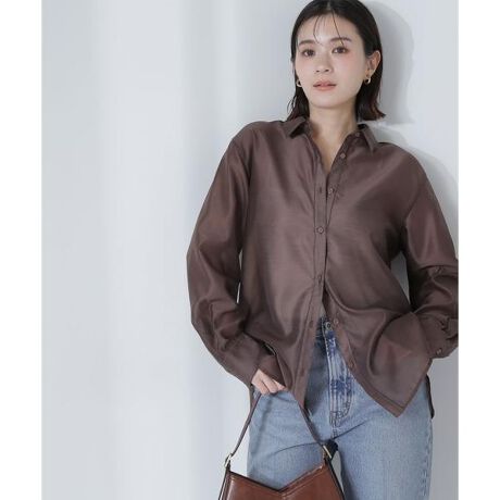 ベーシックなデザインでも今年らしいシアー素材がポイントのオーバーシャツ。羽織りにも使えて、前ボタンを留めるとトップスとしても着ていただけます。配色を効かせた貝調ボタンがポイント。シアー感を活かすため、ポケットなどのディテールを無くすことで、ミニマルさが引き立つデザインです。<素材>トレンドの透け素材を使用。滑らかで肌当たりの良さがありながらダレにくく、襟やカフスもシャキッと決まる素材感です。<詳細>仕様・前ボタン裏地・なし透け感・なし / 光沢・あり / 伸縮性・なし 生地の厚さ・薄手※モデルの着用画像の場合、光の当たり具合により、実際の色味と異なって見えることがございます。色味は、商品単体の画像をご参照ください。