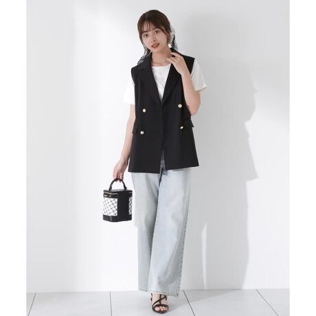 シルエットにこだわったテーラード型のジレです。上品な印象の金ボタン仕様で、ベルトが付いているのも嬉しいポイント。ウエストマークができるので、パンツはもちろんフェミニンなフレアスカートとも相性が良いです。同素材で黒とベージュのみ、スリット入りフレアパンツ(店舗商品番号121-5130305)もございます。<素材>ポリエステル素材を使用しています。<詳細>仕様・前ボタン裏地・あり透け感・なし / 光沢・なし / 伸縮性・なし 生地の厚さ・普通※モデルの着用画像の場合、光の当たり具合により、実際の色味と異なって見えることがございます。色味は、商品単体の画像をご参照ください。