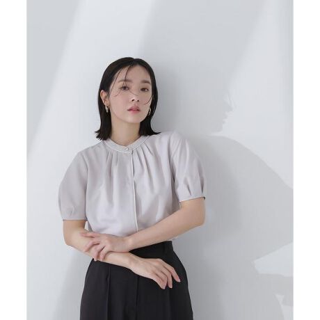 台衿に効かせたゴールドカラー釦がキラっとポイントのきれいめブラウス。配色に拘った華奢に効かせたラインが、全体を明るい印象に見せてくれます。襟ぐりはタックデザインで首まわりを華やかで立体的に演出。タックで仕上げたパフスリーブは甘すぎず上品な印象で着ていただけます。<素材>麻調の様なメランジ感のある合繊素材を使用。さらりとしたタッチで軽やかな素材感です。<詳細>仕様・前ボタン裏地・なし透け感・なし / 光沢・なし / 伸縮性・なし 生地の厚さ・普通※モデルの着用画像の場合、光の当たり具合により、実際の色味と異なって見えることがございます。色味は、商品単体の画像をご参照ください。