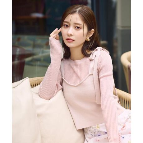 同色で統一されたシアーリブニットとビスチェのアンサンブルです。ビスチェの肩リボンがポイント。ボトムスはデニムパンツ、マニッシュなパンツ、フェミニンなスカートまで合わせやすく、様々なスタイリングを楽しめます。<素材>シアーなリブニットと、無地ニットを使用しています。<詳細>仕様・開閉なし裏地・なし透け感・ややあり / 光沢・ややあり / 伸縮性・あり 生地の厚さ・普通※モデルの着用画像の場合、光の当たり具合により、実際の色味と異なって見えることがございます。色味は、商品単体の画像をご参照ください。