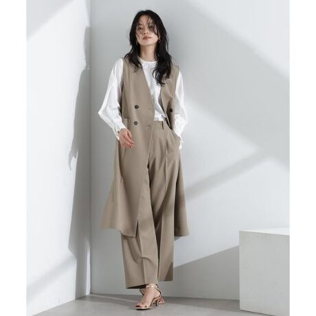 多機能で着心地が良いライトファンクションシリーズのロング丈ダブルジレ。ボトムを選ばず、きちんと感がありつつ着心地がラクな万能デザイン。同素材のパンツやカットソー、ブラウスなど、合わせるアイテムにより幅広い着こなしが楽しめる一枚です。