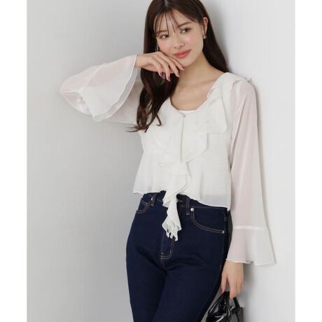 ラッフルをふんだんに入れたブラウスは、今年らしいボヘミアンなコーディネートに見せてくれます。フロントはホック開閉で華奢見えに。透ける素材なので、お持ちのインナーを合わせると安心です。ジョーゼット素材は暑い時期にも取り入れやすくておすすめです。<素材>ジョーゼット素材を使用しています。<詳細>仕様・前ホック裏地・なし透け感・あり / 光沢・なし / 伸縮性・なし 生地の厚さ・薄手※モデルの着用画像の場合、光の当たり具合により、実際の色味と異なって見えることがございます。色味は、商品単体の画像をご参照ください。