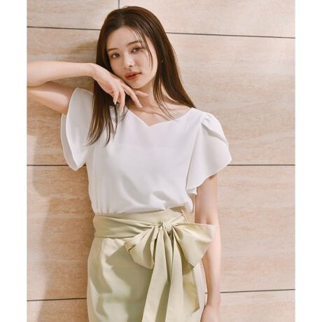 女性らしさが引き立つチューリップスリーブのキレイめブラウス。形や丈感に拘ったチューリップ袖は、二の腕をカバーしながら、上品なフレア感ですっきり見せながら着こなせるデザインです。デコルテラインを美しく見せてくれる滑らかなハートネックもポイント。ナロースカート、フレアスカート合わせがお勧めです。<素材>合繊素材を使用しています。<詳細>仕様・後ろボタン裏地・あり透け感・なし / 光沢・なし / 伸縮性・なし 生地の厚さ・普通※モデルの着用画像の場合、光の当たり具合により、実際の色味と異なって見えることがございます。色味は、商品単体の画像をご参照ください。