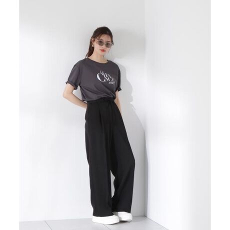 ウエスト位置が少し低めに設定された、リラックスした穿き心地のパンツ。お腹まわりがキレイに見えるようサイドファスナー開きです。ウエストのテープがポイント。センタープレスが入っているシルエットなので、大人な雰囲気で着用いただけます。<素材>キレイめなツイル素材を使用しています。<詳細>仕様・左ファスナー裏地・なし透け感・なし / 光沢・なし / 伸縮性・なし 生地の厚さ・普通※モデルの着用画像の場合、光の当たり具合により、実際の色味と異なって見えることがございます。色味は、商品単体の画像をご参照ください。
