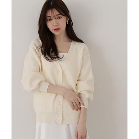 全方位にパール調をあしらった、大人かわいいニットカーディガン。ルーズシルエットながらも、Vネックデザインでシャープさを演出。ボリュームがありますが、コートを羽織れるデザインです。華やかなパール調を活かして、春先はコーディネートのポイントで着ていただけます。<素材>さらっとした糸を使用しています。<詳細>仕様・前ボタン裏地・なし透け感・なし / 光沢・なし / 伸縮性・あり 生地の厚さ・普通※モデルの着用画像の場合、光の当たり具合により、実際の色味と異なって見えることがございます。色味は、商品単体の画像をご参照ください。