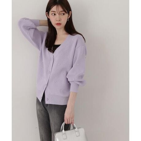 全方位にパール調をあしらった、大人かわいいニットカーディガン。ルーズシルエットながらも、Vネックデザインでシャープさを演出。ボリュームがありますが、コートを羽織れるデザインです。華やかなパール調を活かして、春先はコーディネートのポイントで着ていただけます。<素材>さらっとした糸を使用しています。<詳細>仕様・前ボタン裏地・なし透け感・なし / 光沢・なし / 伸縮性・あり 生地の厚さ・普通※モデルの着用画像の場合、光の当たり具合により、実際の色味と異なって見えることがございます。色味は、商品単体の画像をご参照ください。