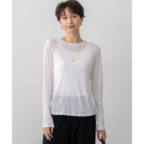 シアーな素材感のカットソー。コンパクトながら肌に張り付かないサイジングで、異なるカラーを2枚レイヤードして、色の重なりを楽しめるアイテムです。ホワイト×ライトイエローや、サックスブルー×ベージュなど、色の組み合わせ次第で印象も変わり、新鮮なスタイリングを叶えます。また、シャツやニットの襟ぐりや袖口からちらりとのぞかせても、今年らしい抜け感をプラスします。カラーは、清潔感のあるホワイト(#001)、シックなブラック(#005)、上品なベージュ(#033)、爽やかなサックスブルー(#073)、ヘルシーな印象のライトイエロー(#042)の5色展開です。