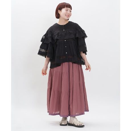 マチはコード刺繍をあしらい、歩いて広がるたびに変わる表情がたまらない一枚です。