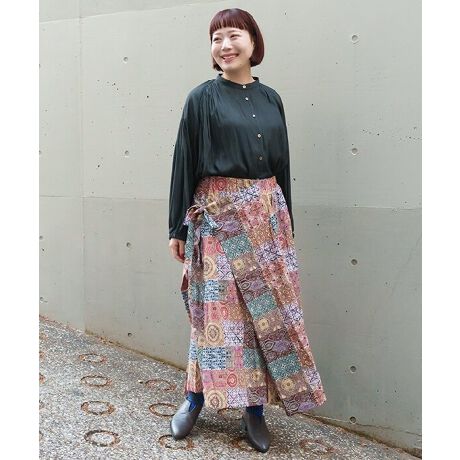 まるでタイルのような柄生地が目を惹くスカートです。