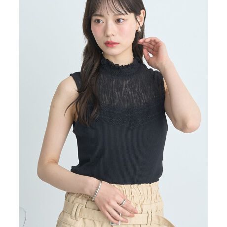 レースとリブがドッキングしたフェミニンなタンクトップ。シャーリングを施したハイネックがスタイリングを上品に演出します。レースの透け感がレディムードを盛り上げてくれるアクセントに。シンプルなデザインで着回しもしやすく、インナー使いにもピッタリなおすすめのアイテムです。