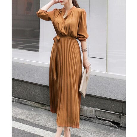 プリーツが歩く度優雅に揺れるAラインワンピース。