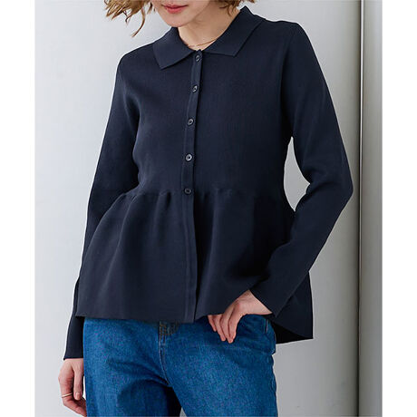 ウエストペプラムポロニットカーディガン