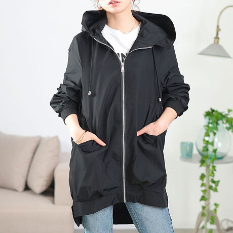 季節の変わり目に持っておきたいマウンテンパーカーです。前後差のある着丈とスリットが入っているこなれデザイン。裾はくしゅっとしていて気になる腰回りをカバーしてくれます。大きめのフードのパーカーで、小顔見せも抜群。デイリーの他、アウトドアやスポーツのシーンでも活躍。シンプルで着回しやすく、ワードローブに加えたいアウターですよ☆
