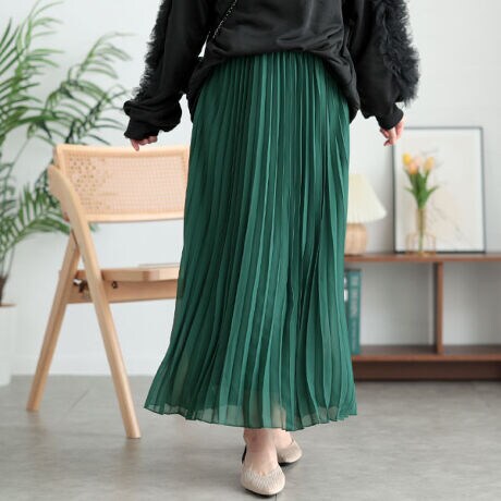 一枚は持っておきたいきれいアイテム!女性らしいエレガントなシフォンプリーツスカートです。足元まで隠すロング丈で気になるレッグラインはまるっとカバー。歩くたびに揺れ動くプリーツラインが360度きれいみせ。少し短めの着丈によって、足首に透け感を出して上品さをプラス。総ゴムウエストで楽ちんな穿き心地も嬉しいポイント。通年使える&キレイめ・カジュアルコーデにマルチに使える優秀なスカートです☆