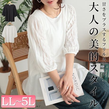 女性らしい華やかさを加えるフリルスリーブチュニック。着こなしやすいカットソーを、レディにアップデートさせてくれる一枚。スリーブのたっぷりフリルがひらひらと躍り、シアー素材のドッキングで軽快さを演出します。ぽわんとしたパフスリーブがガーリッシュなひと匙に。程よく広がるチュニック丈でラフな印象に。モタつきなく、ゆったりとした着心地に長過ぎないチュニック丈で、すっきり体型カバー。窮屈感のないラウンドネックが、お顔周りもすっきり見え。華やかさを演出しながら、シンプルなデザインだからコーデに取り入れやすいのもポイントに。
