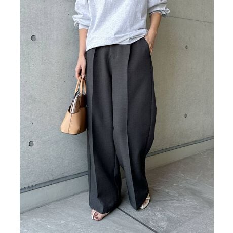 ふっくらと厚みのある素材を使用したワイドパンツ。
