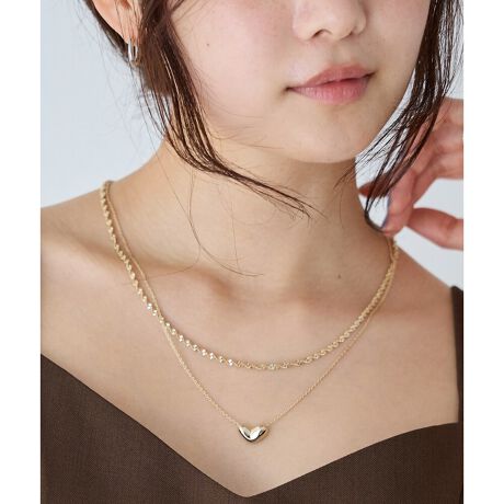 ハート型トップのチェーンとツイストチェーンを組み合わせた2連ネックレス。