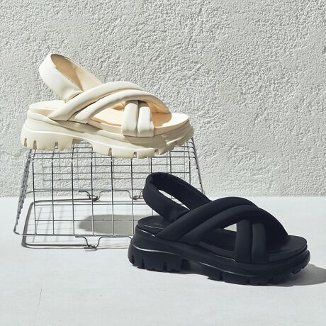 ふかふか サッと履け手歩きやすい クロスベルト厚底サンダル/51201