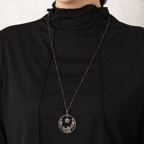 サークルの中にお花を並べた、上品な甘さのあるネックレス。