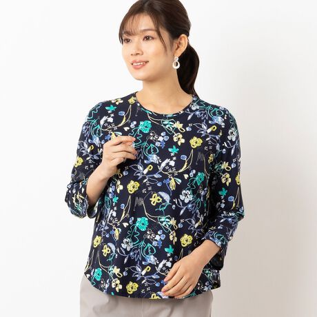 柔らかい風合いの綿天竺に花柄をプリントしたカットソー。