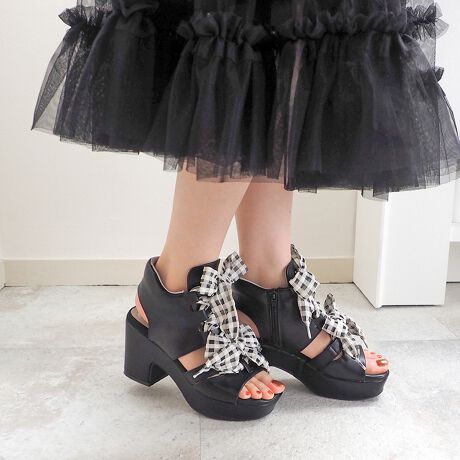 人気の理由はしっかり盛れる厚底デザインなのに傾斜が少なく歩きやすいうえ、ふかふかクッションで足裏も痛くならないところ。