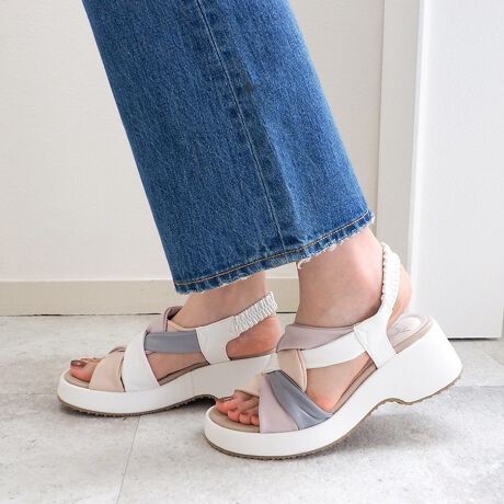 特徴的なフォルムの厚底ソールが目を惹く、ボリュームサンダル。byあしながおじさんらしいニュアンスのあるカラーコンビもポイントです。