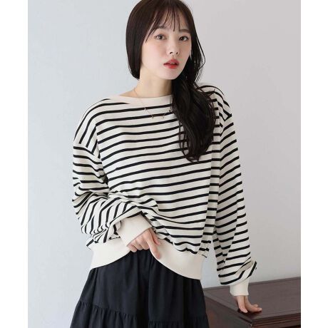 ボートネックとゆるっとしたシルエットが特徴的なスウェット。