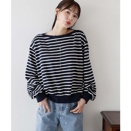 ボートネックとゆるっとしたシルエットが特徴的なスウェット。